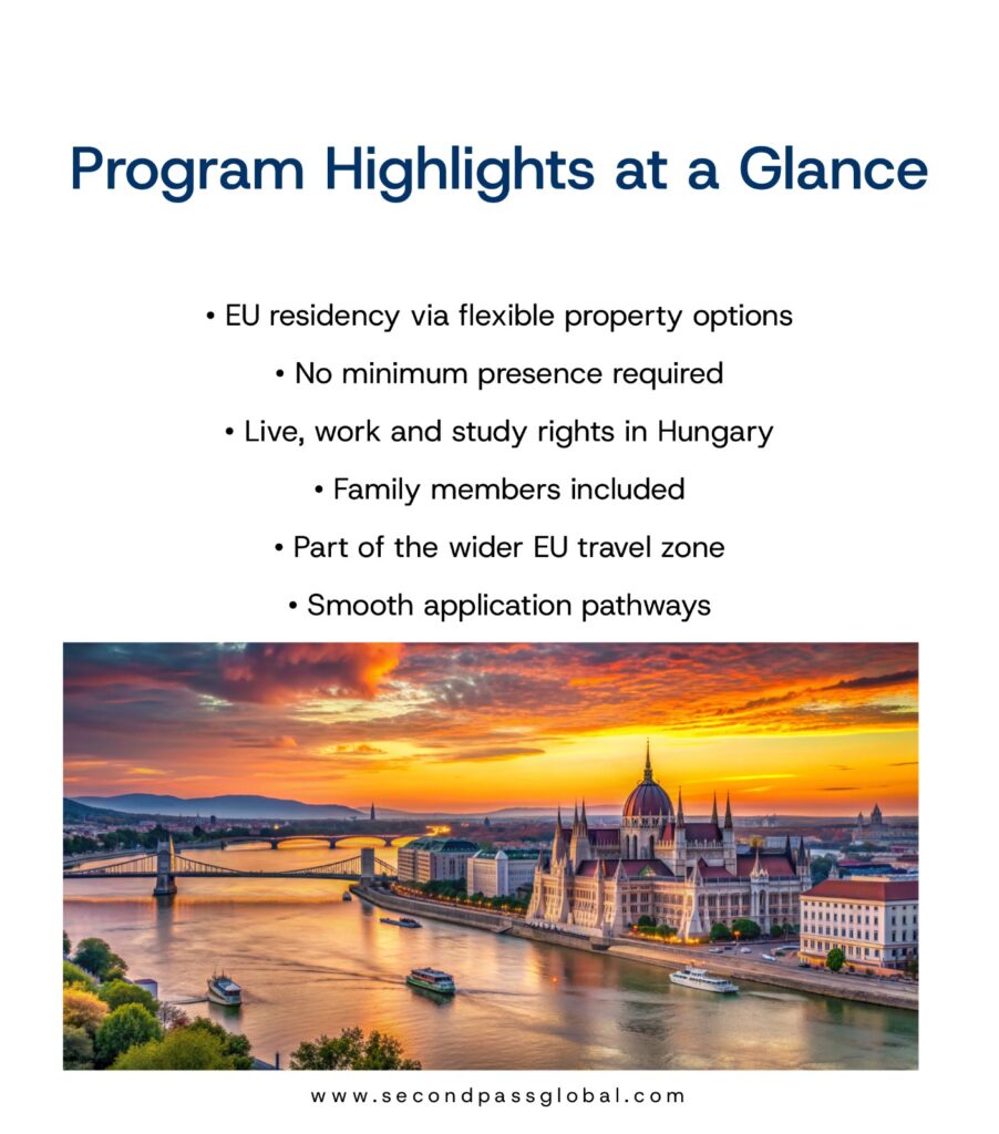 Hungary offers a flexible route to EU residency through real estate investment 🇭🇺. With property purchases starting from $250,000, investors can secure a residency permit backed by tangible assets and gain access to the Schengen Zone.