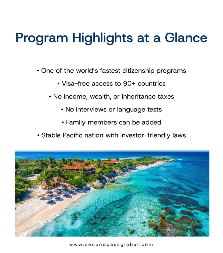 Family members can be included in the application, all under a stable and investor-friendly legal framework in this Pacific nation.